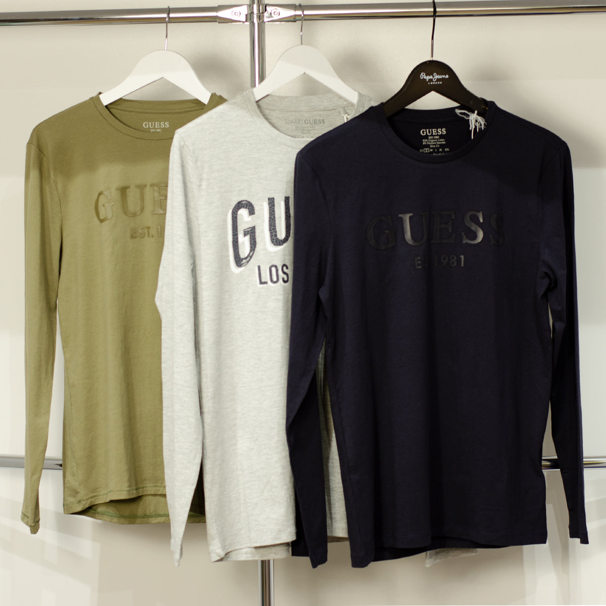 Pakiet zawiera 50 męskich longsleeve marki Guess. Znajdują się w nim produkty w rozmiarach od XS do XXL. Artykuły są w 100% nowe z metką, oryginalne i pochodzą z kolekcji Wiosna/Lato 2023.